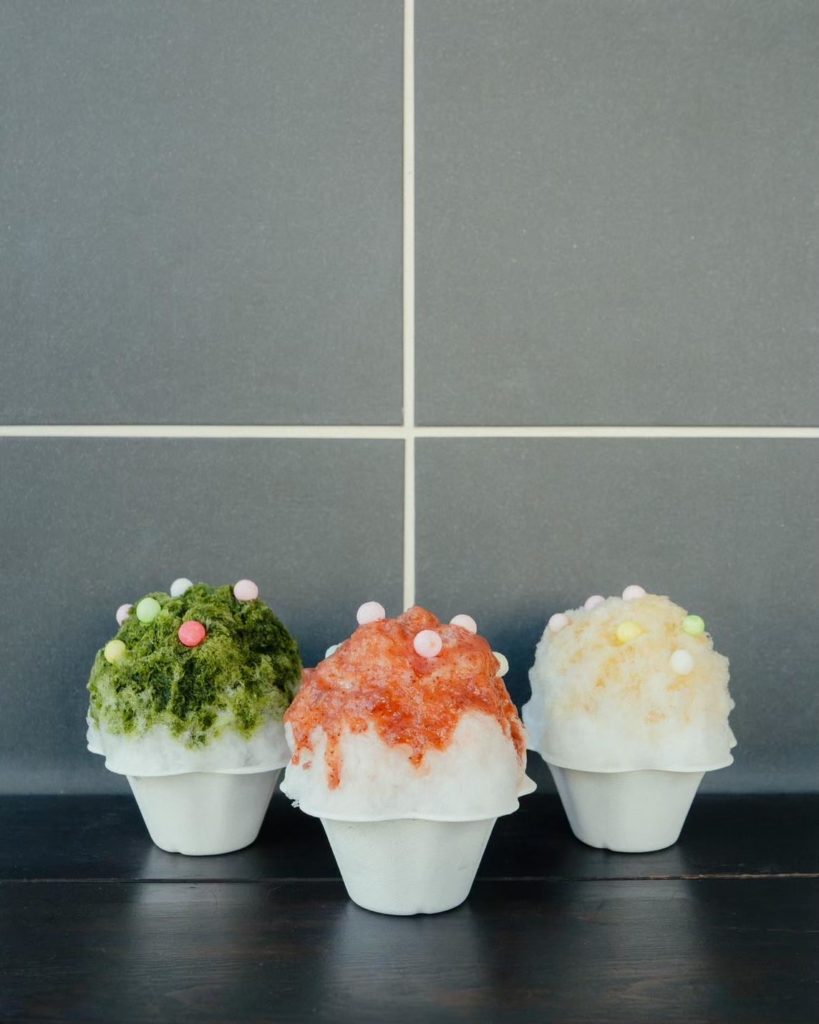氷の上には白玉と香川県の伝統菓子おいりをトッピング