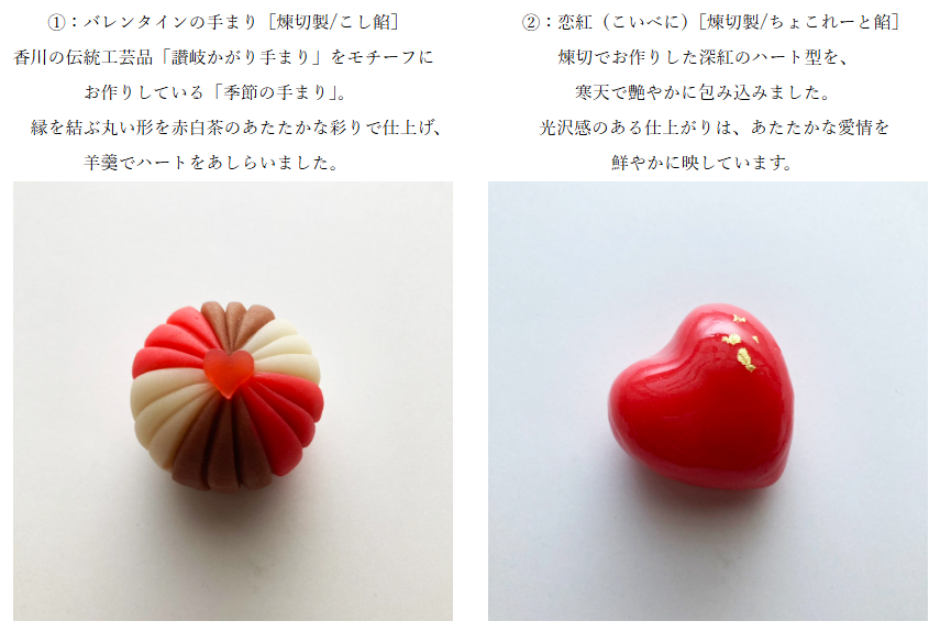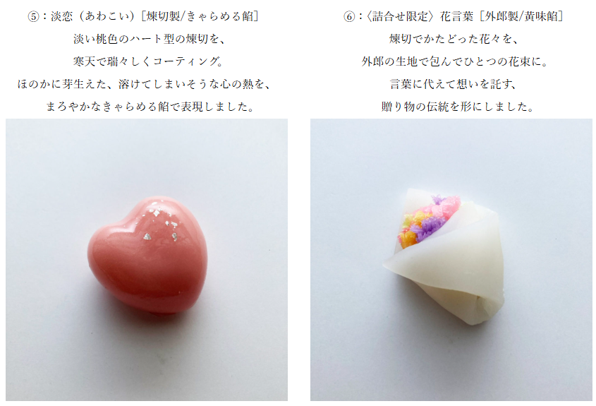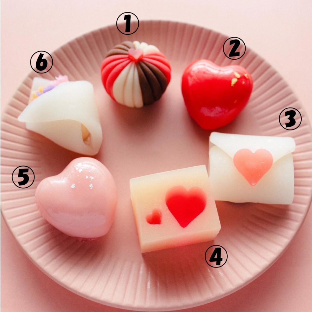 愛情をモチーフにした上生菓子は、どれも可愛らしく彩り鮮やかな意匠に仕上がりました。